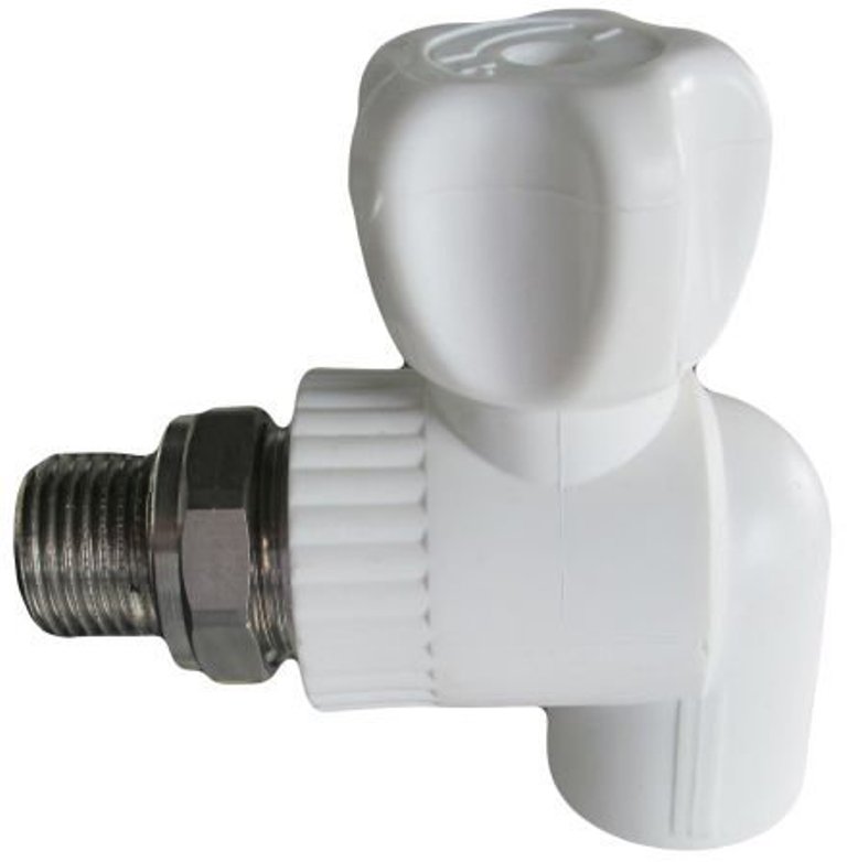 Кран шаровой для радиатора угловой D=20/1/2" (белый)